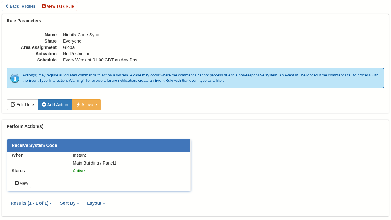 - Task Rule (New Action): You can now configure a Receiving System Code task action. This enables automatic synchronization of system codes when external systems may be modifying them, ensuring any changes are seamlessly synced with Connect ONE.